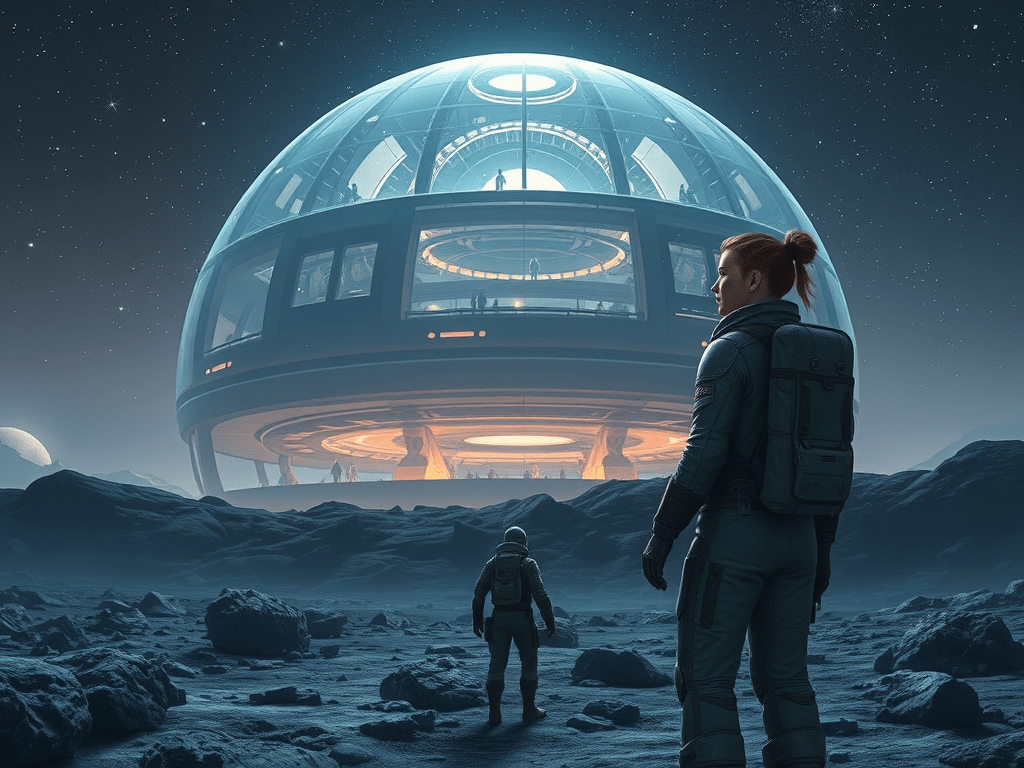 The fair was in Zone A. It was one hundred and fifty kilometres away. A serious lunar trek made easy by lunar rail. He checks his watch and smiles – plenty of time.