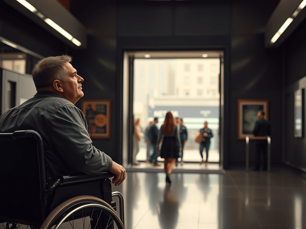 Moving his joystick, the wheelchair powers out of his room. He looks down at the floor beneath him. As expected, it is largely deserted at this early hour. A strong smell of detergent lingers in the recycled air from the robotic cleaners whose shift had just ended.