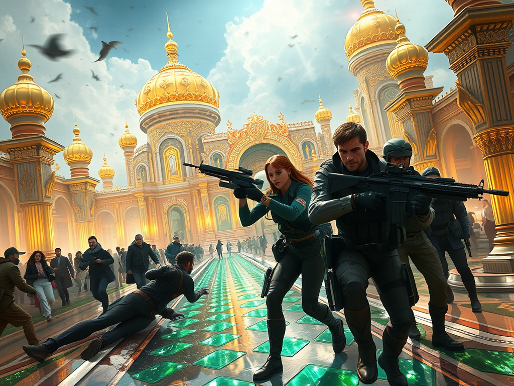Immediately, I take up her position and return fire. The bodies of dead troops lie on the floor.