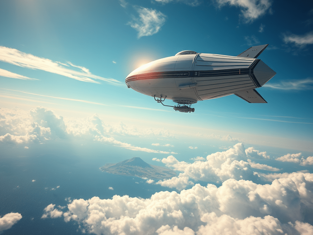 The ship finally stops rattling, and a blue sky appears with white puffy shapes below.