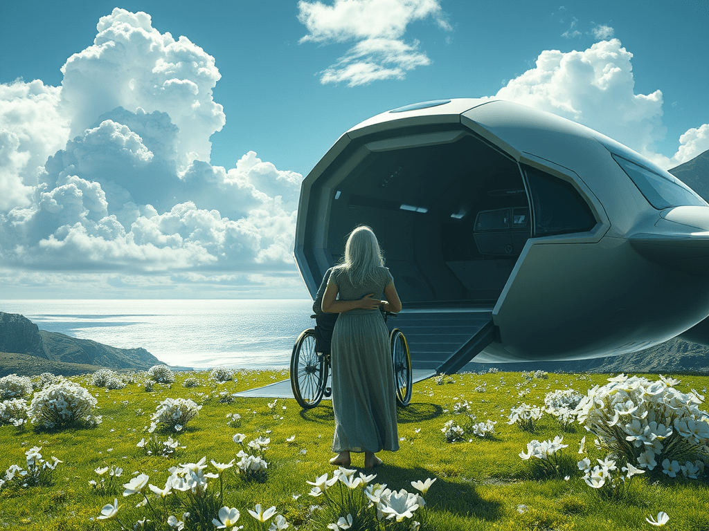 He asks the AI on his wheelchair, Sarah, what time it is? He has time to spare.