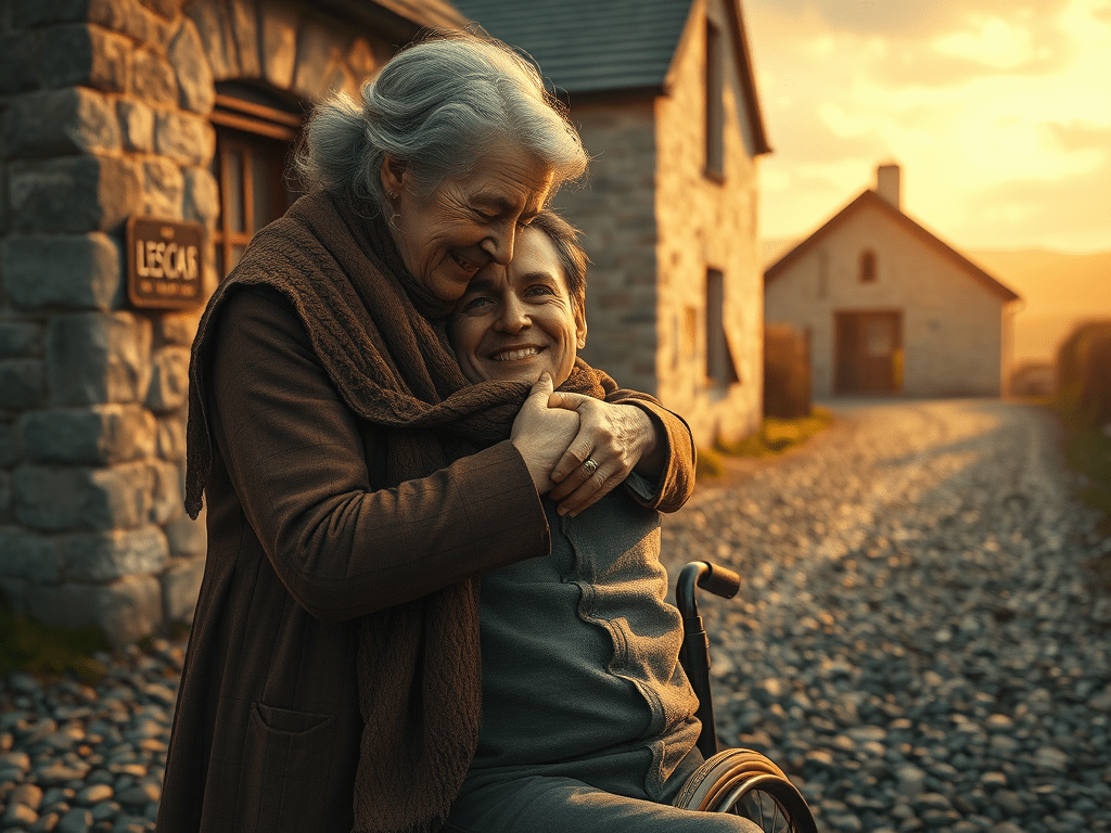 Maeve rushes forward and wraps her arms around the older woman.